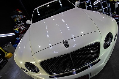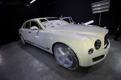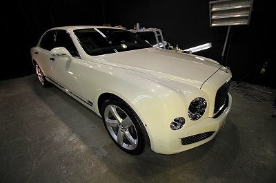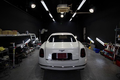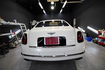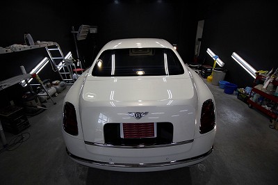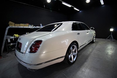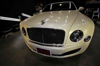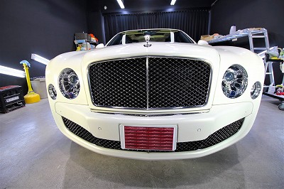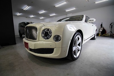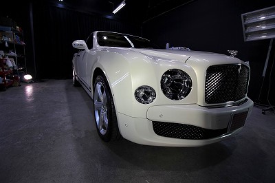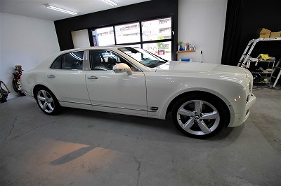 奈良県よりベントレーミュルザンヌスピードのご入庫です!ボディカラーはパールホワイト。施工はボディには