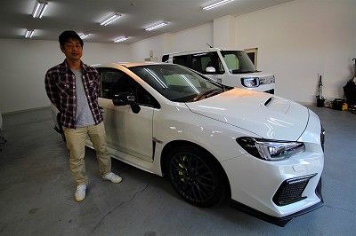 奈良県よりスバルWRX STIのご入庫です!ボディカラーはクリスタルホワイトパール!施工はボディには