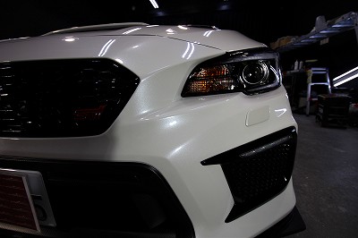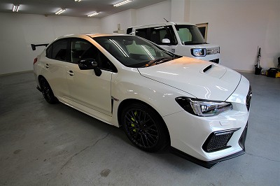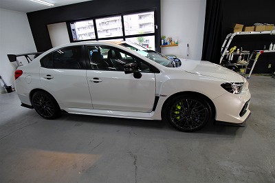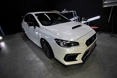 奈良県よりスバルWRX STIのご入庫です!ボディカラーはクリスタルホワイトパール!施工はボディには