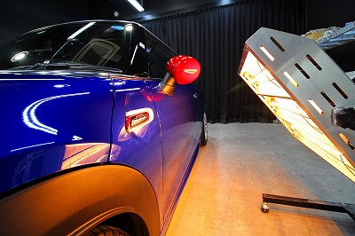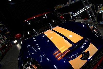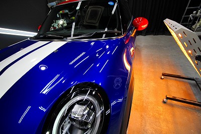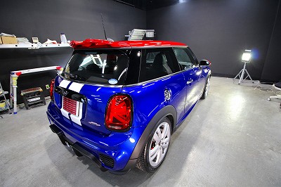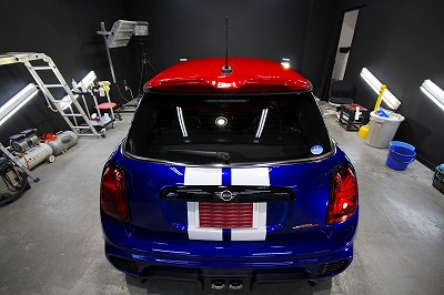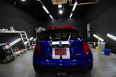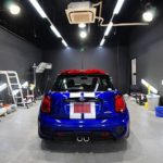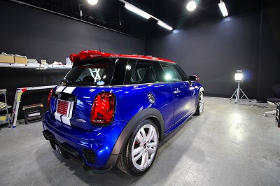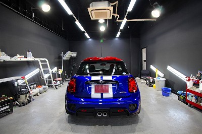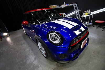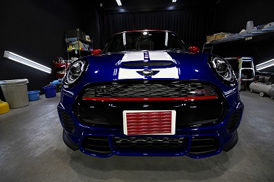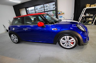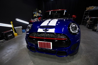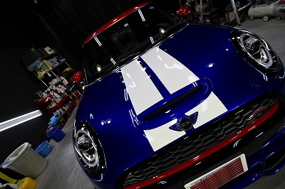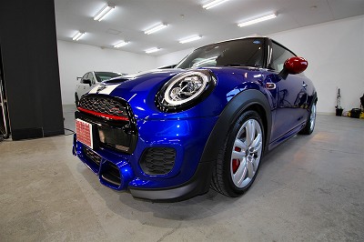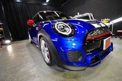 大阪市阿倍野区よりミニクーパーJCWのご入庫です!ボディカラーはブルーです!施工はボディにはG’ZOX