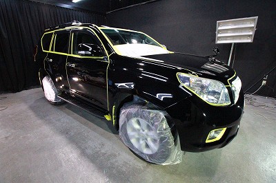 大阪府豊中市よりランドクルーザープラドのご入庫です!ボディカラーはトヨタのブラック202!施工は
