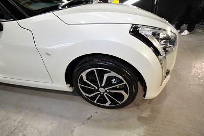 ホワイト!施工はボディにはG’ZOXハイドロフィニッシュ/ホイーコーティングの二点です。