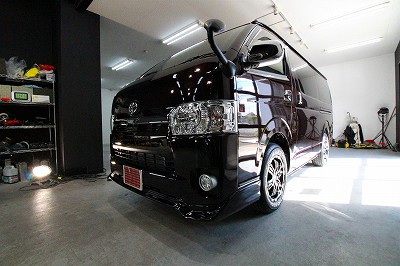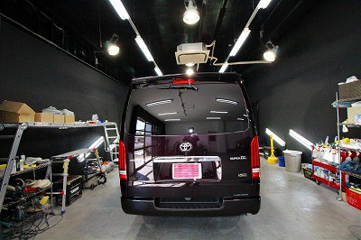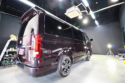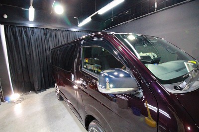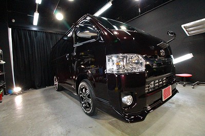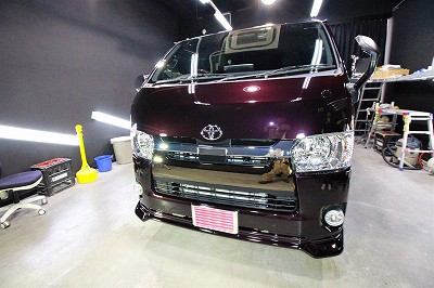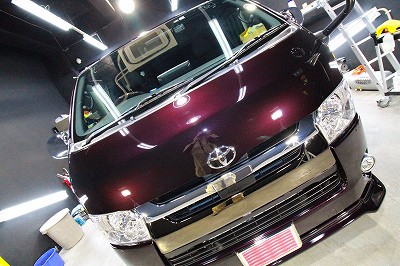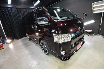 京都府よりトヨタハイエースのご入庫です!ボディカラーはボルドーマイカメタリック!施工はボディには