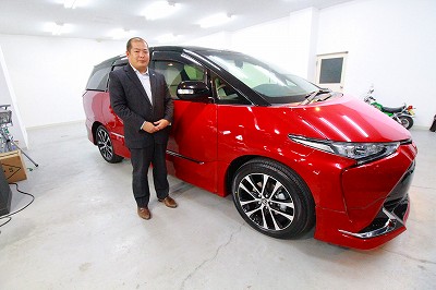 大阪市阿倍野区よりトヨタエスティマのご入庫です!ボディカラーはルーフブラック/レッドマイカメタリック