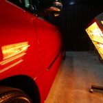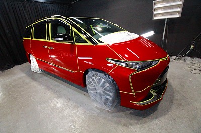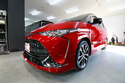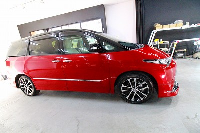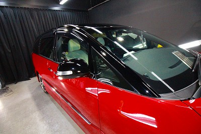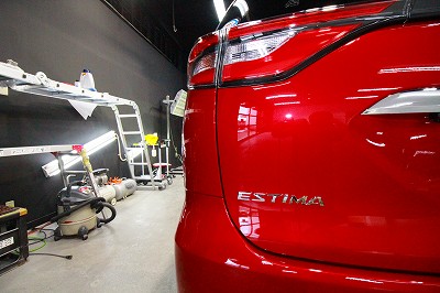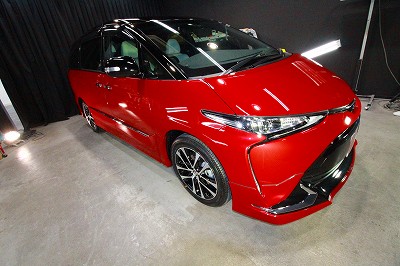 大阪市阿倍野区よりトヨタエスティマのご入庫です!ボディカラーはルーフブラック/レッドマイカメタリック