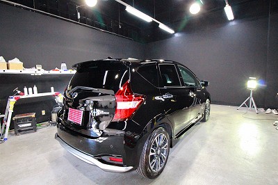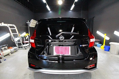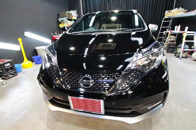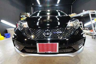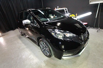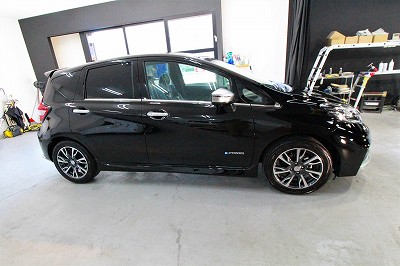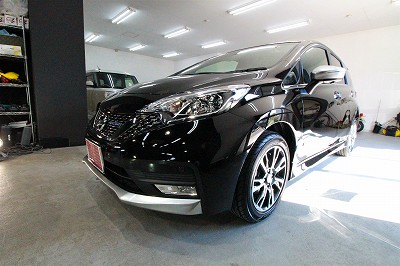大阪府茨木市より日産ノートのご入庫です!ボディカラーはスーパーブラック(ソリッド)施工はボディには