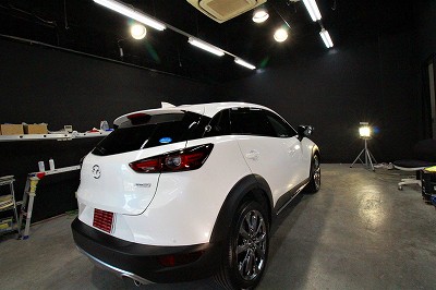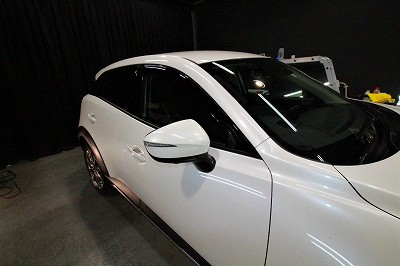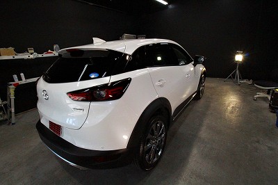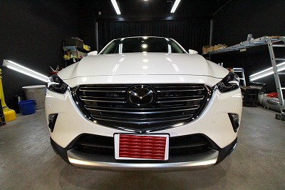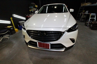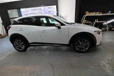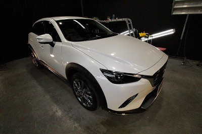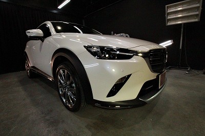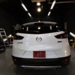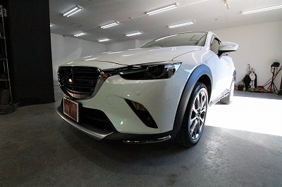 京都府よりマツダCX3のご入庫です!ボディカラーはスノーフレイクホワイトパールマイカ!施工はボディ