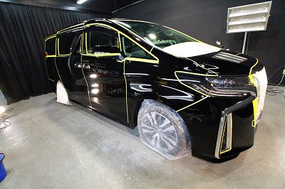 大阪府和泉市よりトヨタアルファードのご入庫です!ボディカラーはトヨタのブラック202 !施工は
