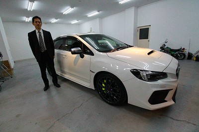 大阪府茨木市よりスバルWRX STI のご入庫です!ボディカラーはクリスタルホワイトパール!施工は