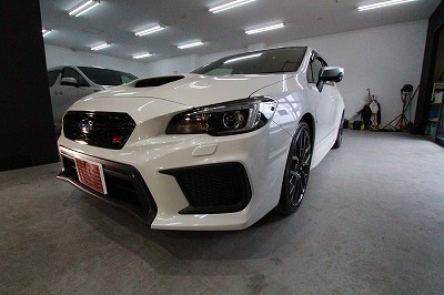 大阪府茨木市よりスバルWRX STI のご入庫です!ボディカラーはクリスタルホワイトパール!施工は