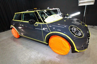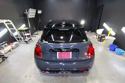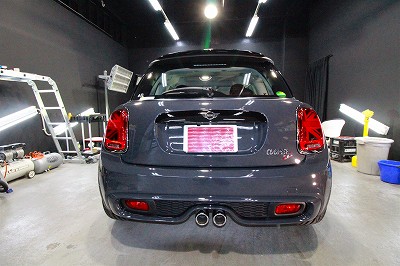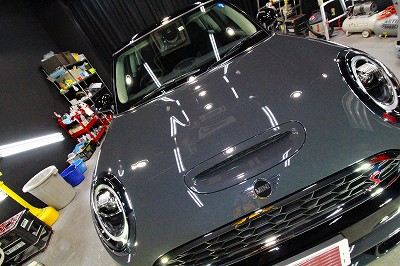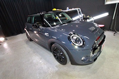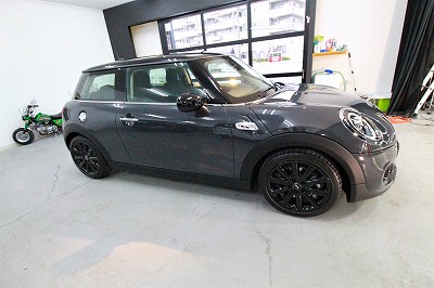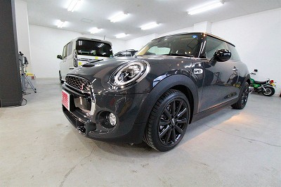 滋賀県よりミニクーパーSのご入庫です!ボディカラーはグレーです!施工はボディにはハイモースコート