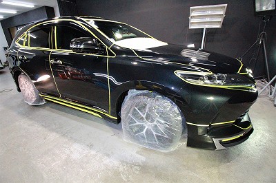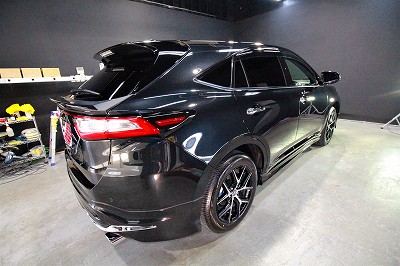 大阪府高槻市よりトヨタハリアーのご入庫です!ボディカラーはブラックマイカ!施工はボディにはハイモース