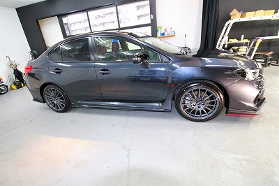 大阪府堺市よりスバルWRX STI のご入庫です!ボディカラーはダークグレーメタリック!施工はボディには