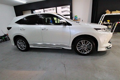 大阪府高槻市よりトヨタハリアーのご入庫です!ボディカラーはホワイトパール!施工はボディには