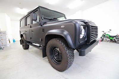 兵庫県三田市よりローバーディフェンダーのご入庫です!ボディカラーはマット塗装!施工はボディには