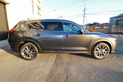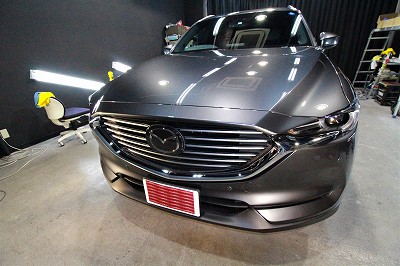 大阪府豊中市よりマツダCX8 KG5Pのご入庫です!ボディカラーは人気のマシーングレー!施工は