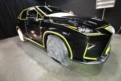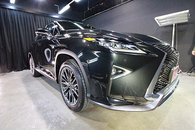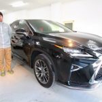 京都市伏見区よりレクサスRXのご入庫です!ボディカラーはグラファイトブラックガラスフレーク!
