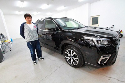 大阪府松原市よりスバルフォレスターのご入庫です!ボディカラーはクリスタルブラックシリカ!