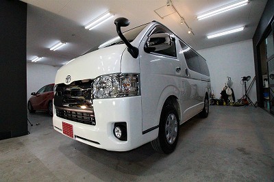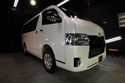 大阪市淀川区よりトヨタハイエースのご入庫です!ボディカラーはホワイトパール!施工はボディには