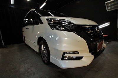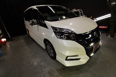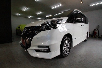 大阪市都島区より日産セレナのご入庫です!ボディカラーはブリリアントホワイトパール!施工は