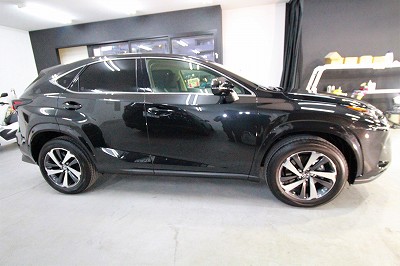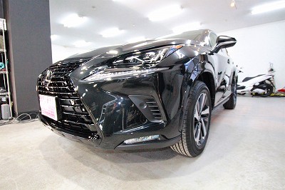 大阪府高槻市よりレクサスNXのご入庫です!ボディカラーはグラファイトブラックガラスフレーク