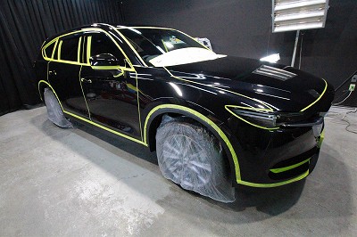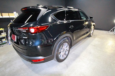 大阪府茨木市よりマツダCX8のご入庫です!ボディカラーはジェットブラックマイカ!施工はボディ