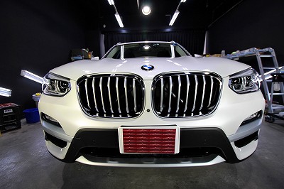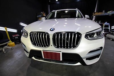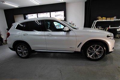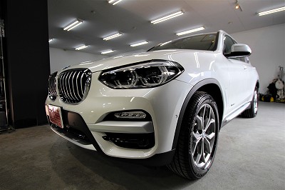 大阪府吹田市よりBMW X3のご入庫です!ボディカラーはミネラルホワイト!施工はボディには