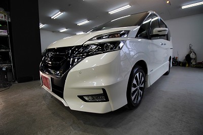 大阪府箕面市より日産セレナのご入庫です!ボディカラーはブリリアントホワイトパール!施工は