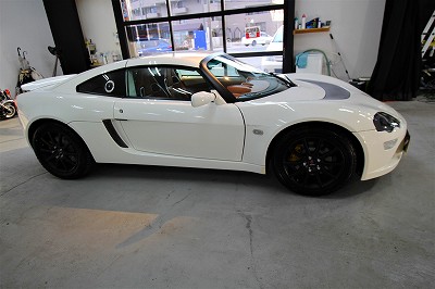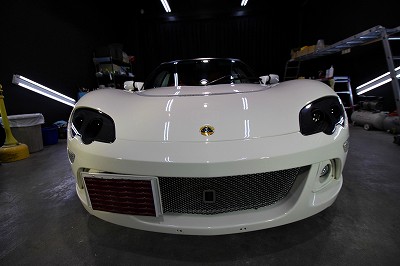 奈良県よりロータスヨーロッパ225のご入庫です!ボディカラーはホワイトパール!施工はボディには