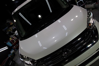 カラーはホワイトパール!施工はボディにはG’ZOX艶プラス/ホイールコーティングの二点です。