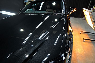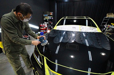カラーはグラファイトブラックガラスフレーク!施工はボディにはハイモースコート/ホイール