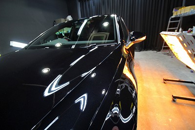 カラーはディープブラックパールエフェクト。施工はボディにはG’ZOXハイドロフィニッシュ/