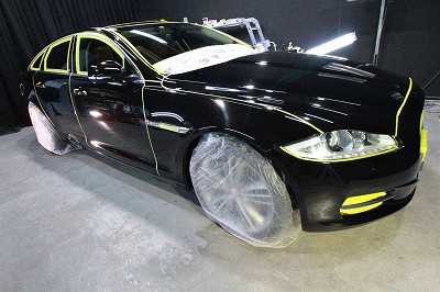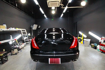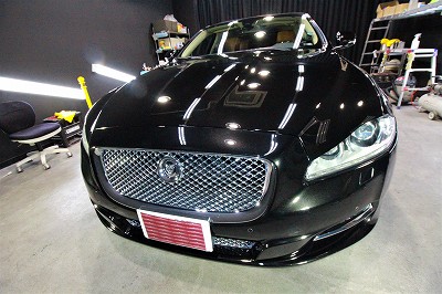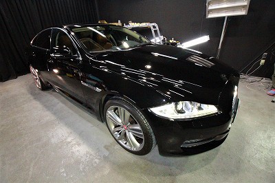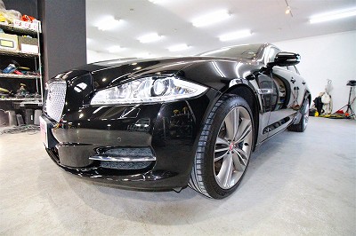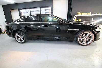 大阪市北区よりジャガーXJのご入庫です!ボディカラーはアルティメットブラック!施工はボディ