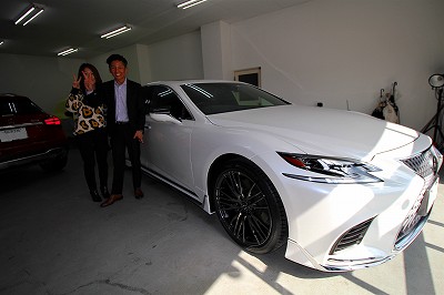 大阪市住吉区よりレクサスLS500のご入庫です!ボディカラーはホワイトノーヴァガラスフレーク!