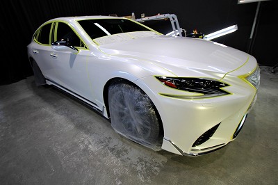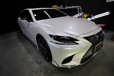 大阪市住吉区よりレクサスLS500のご入庫です!ボディカラーはホワイトノーヴァガラスフレーク!