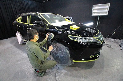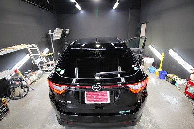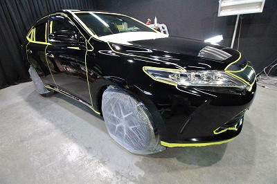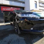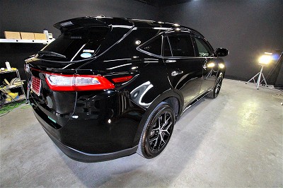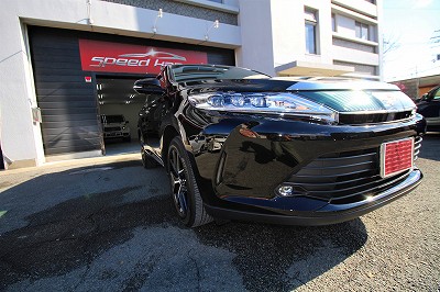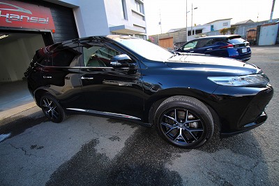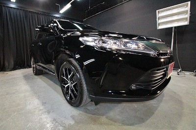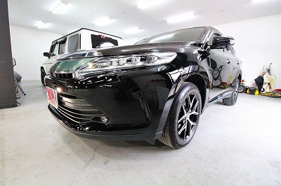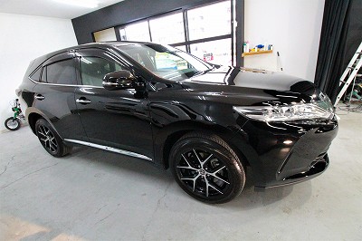 大阪市住之江区よりトヨタハリアーのご入庫です!ボディカラーはトヨタのブラック202!施工は