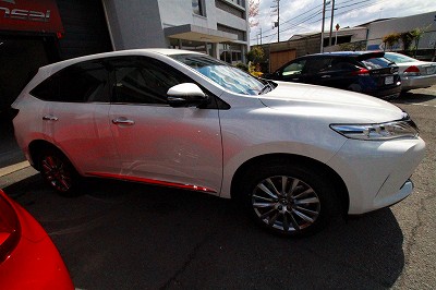 大阪府東大阪市より当店のリピーター様がトヨタハリアーをお持ち下さいました!ボディカラーはホワイト