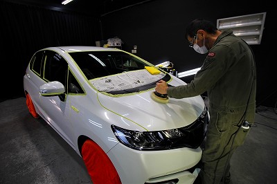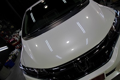 ホワイトパール!施工はボディにはハイモースコート/ホイールコーティング/フロントガラス撥水二年耐久