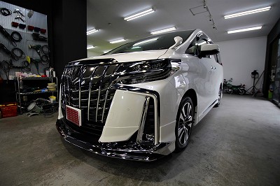大阪市都島区よりトヨタアルファード30系のご入庫です!ボディカラーはホワイトパール!施工はボディには