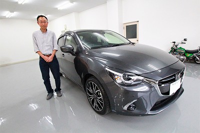 京都市よりマツダデミオのご入庫です!ボディカラーはマシーングレー!施工はボディにはG’ZOX艶プラス