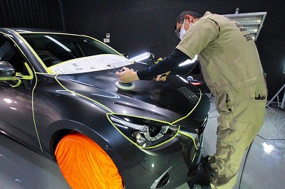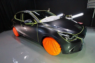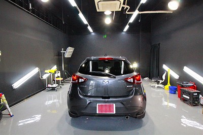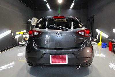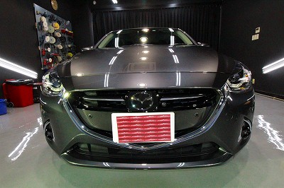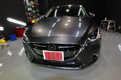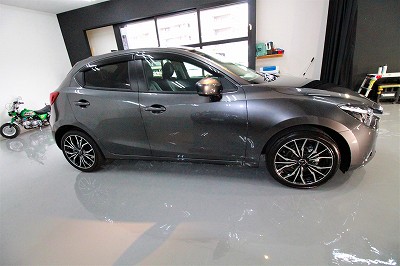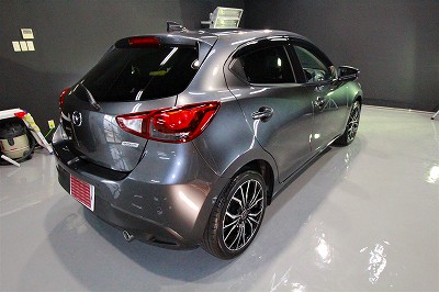 京都市よりマツダデミオのご入庫です!ボディカラーはマシーングレー!施工はボディにはG’ZOX艶プラス