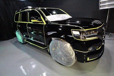 大阪府箕面市よりトヨタランクル200のご入庫です!ボディカラーはトヨタのブラック202!施工はボディ