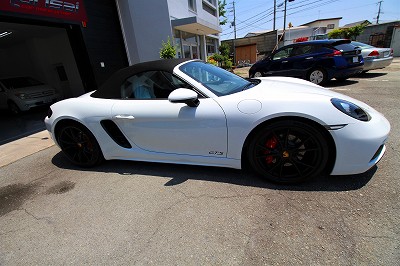 大阪府高槻市よりポルシェボクスター718 GTSのご入庫です!ボディカラーはキャララホワイトメタリック!