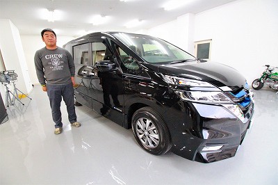 大阪府茨木市より日産セレナのご入庫です!ボディカラーはダイアモンドブラック(スクラッチシールド)