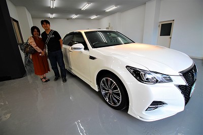 大阪府豊中市よりトヨタクラウンアスリートのご入庫です!ボディカラーはホワイトパール!施工はボディ