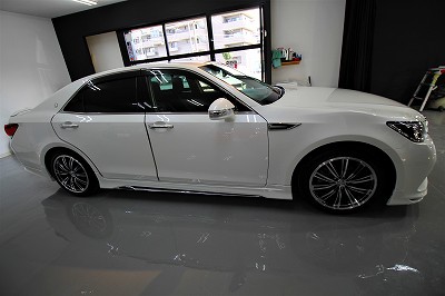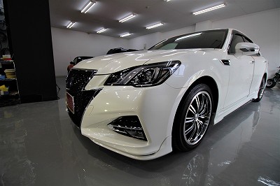 大阪府豊中市よりトヨタクラウンアスリートのご入庫です!ボディカラーはホワイトパール!施工はボディ
