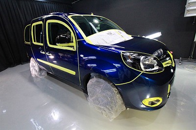 大阪府箕面市よりルノーカングーのご入庫です!ボディカラーはブルーコスモス!施工はボディにはG’ZOX
