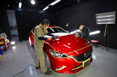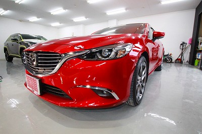 大阪府豊中市よりマツダアテンザセダンのご入庫です!ボディカラーはソウルレッド!施工はボディには