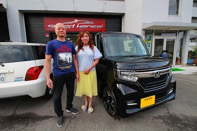 大阪府南河内郡よりホンダNボックスカスタムのご入庫です!ボディカラーはブラックパール!施工はボディ