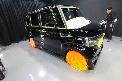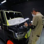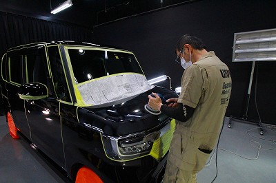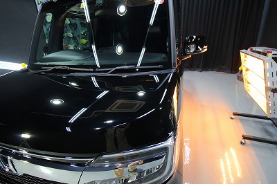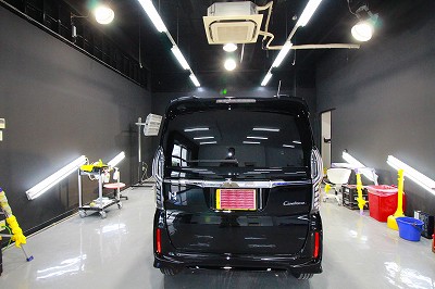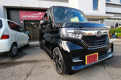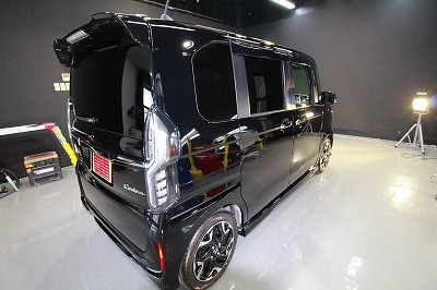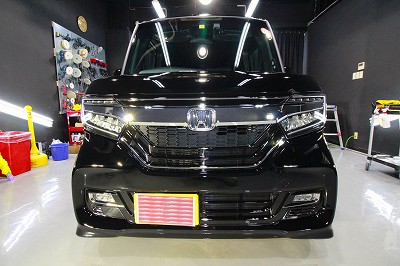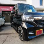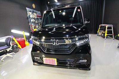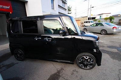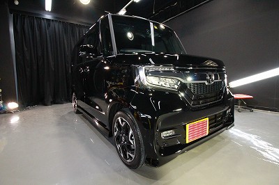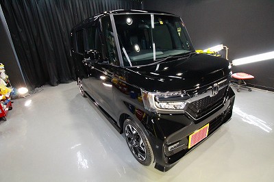 大阪府南河内郡よりホンダNボックスカスタムのご入庫です!ボディカラーはブラックパール!施工はボディ